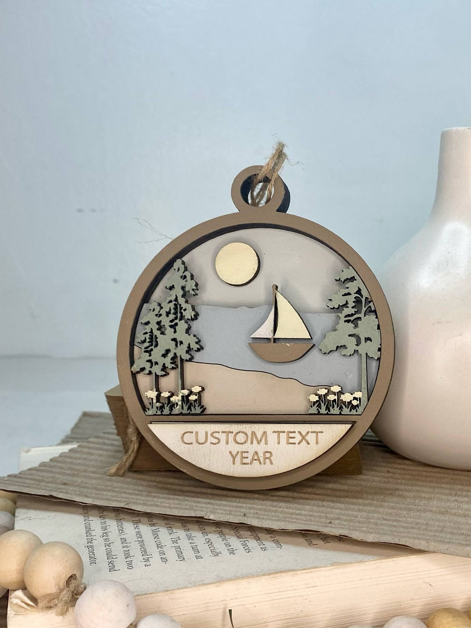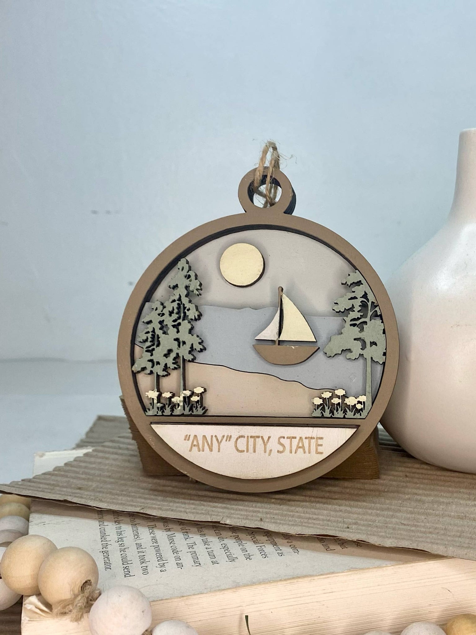 Ordering a custom City State or CustomText ornament is the perfect way to celebrate a special place, whether it's your hometown, popular vacation spot, special lake etc. Each ornament is carefully crafted with precision, featuring laser-cut details and engraved city name/custom text, making it a one-of-a-kind keepsake. Personalize it further with custom details like the year.